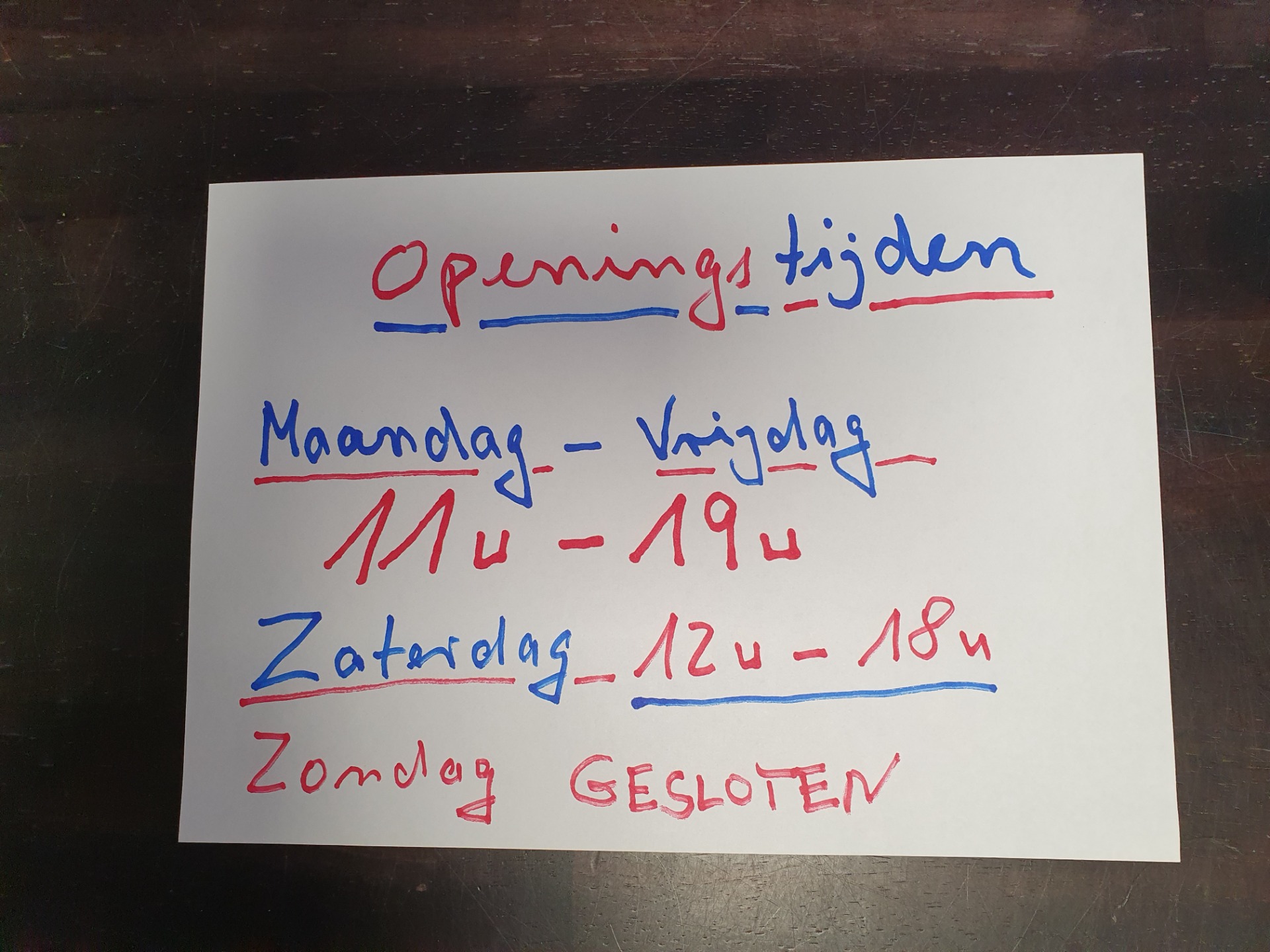 elke dag open Maandag tot Vrijdag. 11 u tot 19 u